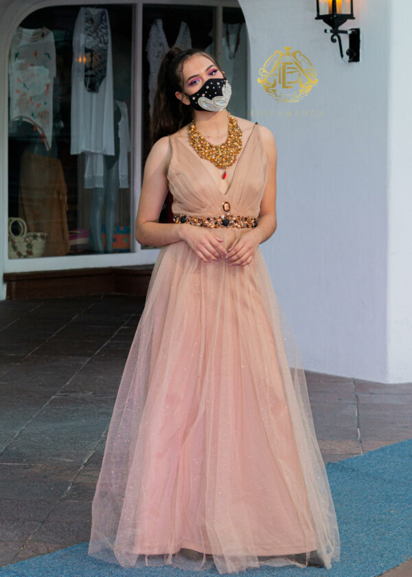 Be the first to review “VESTIDO DE PRINCESA COLOR BEIGE CON BRILLOS Y BORDADO EN CINTURA”