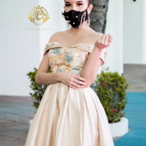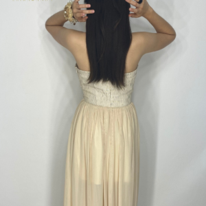 VESTIDO BEIGE-STRAPLE CORAZON BORDADO