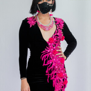 chaquirón, Lentejuela, bordado negro, cristal.