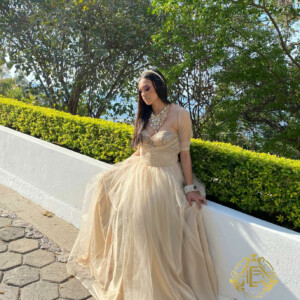 VESTIDO BORDADO EN COPA CON ORGANZA