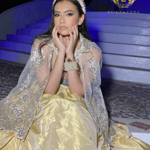 Materiales: bordado dorado con cristal