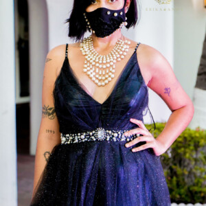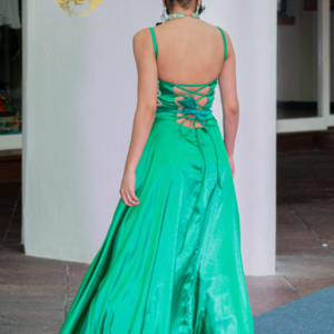 VESTIDO PRINCESA COLOR NEGRO BRILLOSO CON BORDADO EN CINTURA