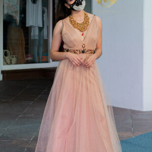 VESTIDO ROSA CON BORDADO AMPON CON COLA