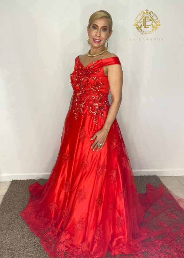 VESTIDO ROJO BORDADO CORSET PRINCESA