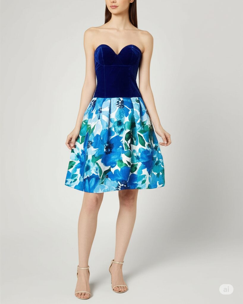 VESTIDO STRAPLESS AZUL PRIMAVERA