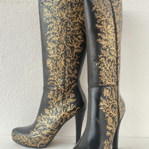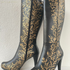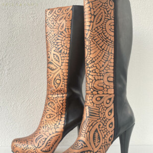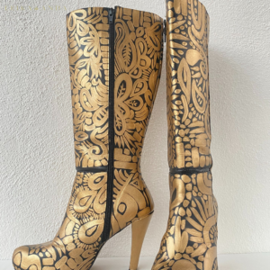 Estas botas forman parte de Erika de Anda shop, es el calzado perfecto para resaltar nuestros outfits estas botas son únicas no hay otras igual, Te proveerá de un look elegante y mexicano. Detalles: bota de piel pintada a mano, botas de piel Medidas: tacón: 11.5cm alto de bota: 46cm Talla: 24. Nuestro producto es artesanal y 100% hecho por manos mexicanas ayudando a mujeres trabajadoras de nuestro país a preservar su forma de ingreso y cultura mexicana.