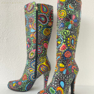 Detalles : bota de piel pintada a mano, botas de piel Medidas: tacón: 11.5 cm alto de bota: 46 cm Talla:25.5 .