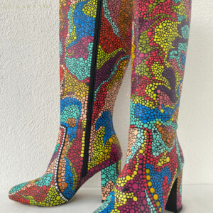Detalles: bota de piel pintada a mano, botas de piel Medidas: tacón: 11.5cm alto de bota: 46cm Talla: 26.5.