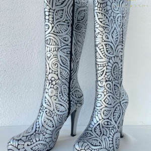 BOTA DE PIEL PINTADA A MANO PLATEADA