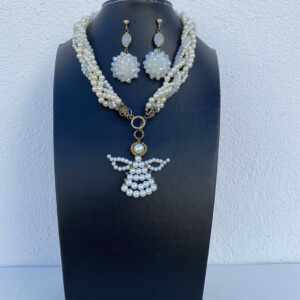 COLLAR CON POMPÓN Y PERLAS CON ARETES
